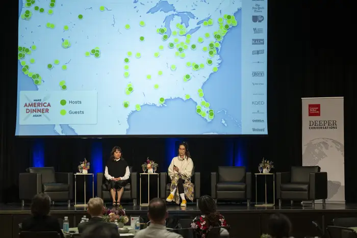 The Carnegie Mellon University community gathered together for “Listening, Learning and Leading Across Difference(opens in new window),” a two-day event (March 29-30) centered on dinner and interpersonal connection and the final event in this year’s Deeper Conversations programming. Alumnae Tria Chang and Justine Lee returned to campus to discuss their project, Make America Dinner Again(opens in new window) (MADA), which seeks to bridge divides across politics and identity by inviting individuals to discuss their life experiences over meals.