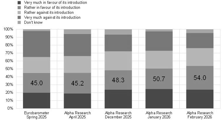 Third, public support for the euro has risen above 50% as earlier concerns about price increases have started to ease.